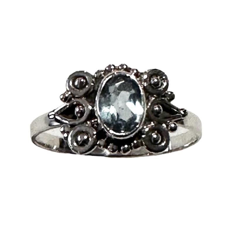 Un trésor ethnique à portée de main Bague Topaze Bleue Facettée Nigéria Aa+ Argent 925